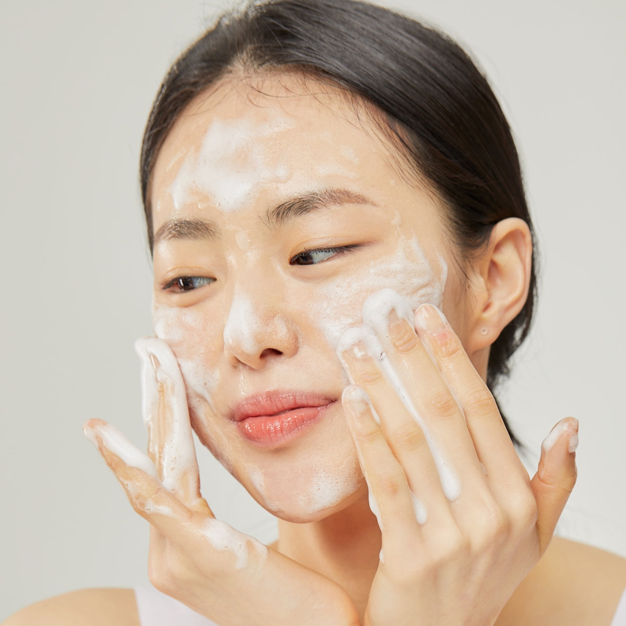 Byrjaðu daginn á að þrífa húðina með mildum andlitshreinsi til að fjarlægja óhreinindi og undirbúa hana fyrir næstu skref.